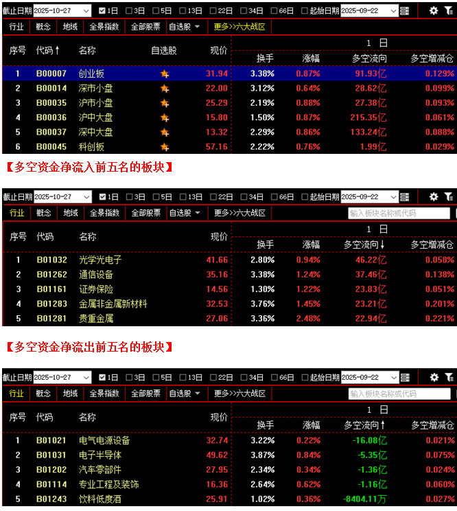 通过资金动向数据显示,六大战区的资金进出情况如下: