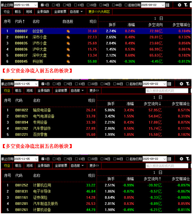 (11月5日午评,北京指南针科技发展股份有限公司提供)