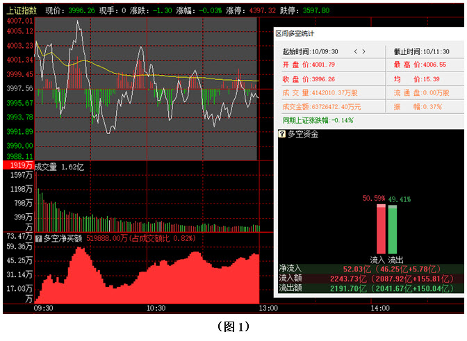 今日早间尽管大盘高开在4000点上方,但始终未能站稳,市场依然是在4000点附近窄幅震荡,至中午收盘时,指数位于3996点。从日K线图上看,今天上午大盘虽没有大幅上攻,但指数依然完全运行在5日成本均线上方,市场短期强势格局并没有发生改变,接下来只要多方继续发力,行情就有望站稳在4000点上方,并向10月30日的4025高点发起冲击。从下方的多空资金来看,早间开盘后,多方就占据优势,随后资金逐步流入。截止到中午收盘时,沪市当中多方力量高于空方超过1个百分点,资金流入50多亿。从六大战区的情况分别来看,截止到今日中午收盘时,创业板战区与科创板战区均为资金流出状态,且两个战区的资金流出额均超过25亿;其余四个战区则均为资金流入,其中不仅沪中大盘战区资金流入超过60亿,深中大盘战区的资金流入额更是达到77亿。可见今日上午场内虽有一定抛压,但整体上多方力量仍明显强于空方,资金依然是以流入为主,说明尽管多空双方在4000点整数关口附近存在着分歧,但投资者的做多热情并没有大幅下降。在这种情况下,即便行情出现反复,向下回探的空间也将较为有限。故此在短期震荡整固之后,市场或仍有继续向上攀升的可能。建议大家控制好仓位,不要盲目追涨杀跌,同时可关注前期调整较为充分且近期股价短期趋势刚刚重新转强的个股,逢低介入。