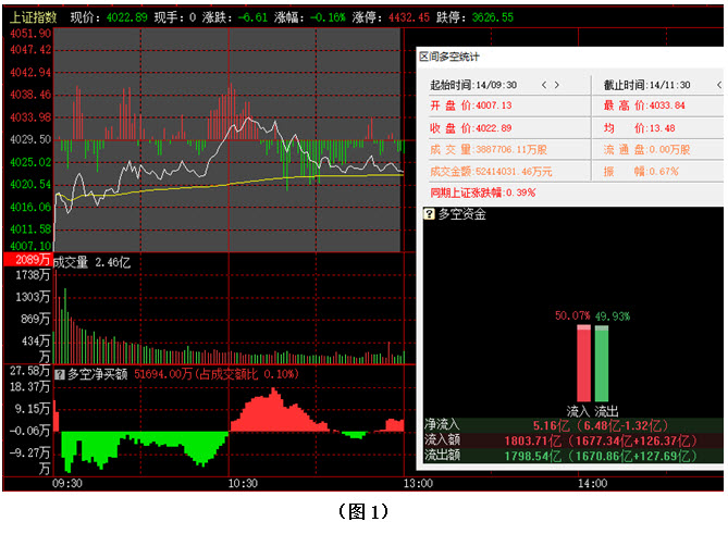 受昨夜欧美股市大跌影响,今日早间大盘出现低开,但市场并未趁势杀跌,而是很快出现回升,并在盘中一度摸至4030点上方,可惜上攻未能持续,至中午收盘时,指数位于4022点。从日K线图上看,今天上午大盘虽然没有大幅拉升,但指数依然稳步运行在5日成本均线上方,市场短期强势格局保持良好,后市行情仍有继续上攻的可能。从下方的多空资金来看,早间开盘后,多方率先占据优势,但盘中多空反复争夺,资金时而翻绿,时而翻红。截止到中午收盘时,沪市当中多方力量高于空方不到1个百分点,资金流入5个多亿。从六大战区的情况分别来看,截止到今日中午收盘时,只有沪市小盘战区为资金流入状态,资金流入额18亿;其余五个战区则均为资金流出,其中创业板战区资金流出19亿,沪中大盘战区资金流出27亿。可见今日上午尽管多方力量较弱,但空方力量也不是很强,说明场内虽有抛压,但并未出现大量恐慌性抛盘,所以整体局面仍在可控范围之内。在这种情况下,行情向上的趋势就不会轻易改变。建议大家在控制好仓位的同时,密切关注场内多空资金的进出情况,只要空方无法连续施压,后市就仍有继续上攻的可能。