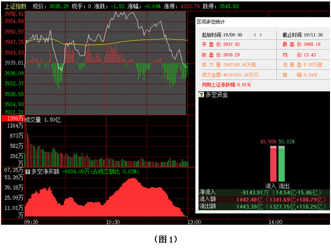 今日早间开盘后,大盘试图向上反弹,但力度并不是很强,以致市场尚未触及到3960点就再次遇阻回落,至中午收盘时,指数位于3938点。从日K线图上看,今天上午大盘向上反弹时明显受到13日成本均线压制,指数无法进一步向上回升,可见市场短期走势依然偏弱,不排除后市有向下考验34日成本均线支撑的可能。从下方的多空资金来看,早间开盘后,多方就占据优势,但盘中空方频频施压,资金进场并不流畅。截止到中午收盘时,沪市当中多方力量低于空方不到1个百分点,资金流出将近亿元。从六大战区的情况分别来看,截止到今日中午收盘时,只有创业板战区与沪中大盘战区为资金流入状态,而两个战区的资金流入额均不足14亿;其余四个战区则均为资金流出,且深中大盘战区的资金流出额超过35亿可见今日上午空方力量在整体上依然强于多方,说明尽管上午大盘曾有向上反弹动作,但资金并未积极进场,所以行情无法持续向上回升,只得再次回落整理。在这种情况下,场内的恐慌情绪就会继续蔓延,导致抛压进一步增强。若接下来多方仍无法及时发力反击,不排除后市有加速下探的可能。建议大家在控制好仓位的同时,密切关注场内多空资金的进出情况,在资金尚未大幅回流之前,不要急于重仓抄底。