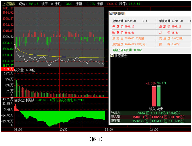 今日早间大盘低开,并快速回落至3900点整数关口下方,虽然市场在3880点附近获得支撑,但迟迟没有出现反弹动作,至中午收盘时,指数位于3881点。从日K线图上看,今天上午大盘不仅重新回落到3900点整数关口下方,而且指数还连续跌破了5日与34日两条重要成本均线,使得前两日刚刚出现好转的市场短期走势再度转弱。目前行情已回到了上周五之前的状态,大盘上方面临着多条重要成本均线以及3900点整数关口的重重压制,如果多方不能连续发力,快速向上形成突破,后市很可能会有进一步下探的动作。从下方的多空资金来看,早间开盘后不久,空方就占据优势,随后资金逐步流出,多方迟迟没有发力反击。截止到中午收盘时,沪市当中多方力量低于空方不到1个百分点,资金流出20多亿。从六大战区的情况分别来看,截止到今日中午收盘时,创业板战区与沪中大盘战区均为资金流出状态,且沪中大盘战区资金流出超过40亿;其余四个战区则均为资金流入,但其中只有深中大盘战区资金流入在30亿之上,深市小盘战区、沪市小盘战区、以及科创板战区的资金流入额均不足10亿。可见今日上午尽管空方持续施压,但多方也没有完全放弃,所以双方的争夺仍在继续。在这种情况下,行情短期内很可能还会反复震荡。但在上方重重压力之下,市场震荡的时间越久,对多方信心的影响就会越大,所以建议大家在控制好仓位的同时,密切关注多空资金的进出情况,若多方后续无力,迟迟无法进行反击,则不要急于抄底,操作上需以谨慎为主。