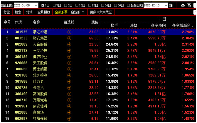 【今日多空资金增仓前200名中涨幅最小的15只个股】